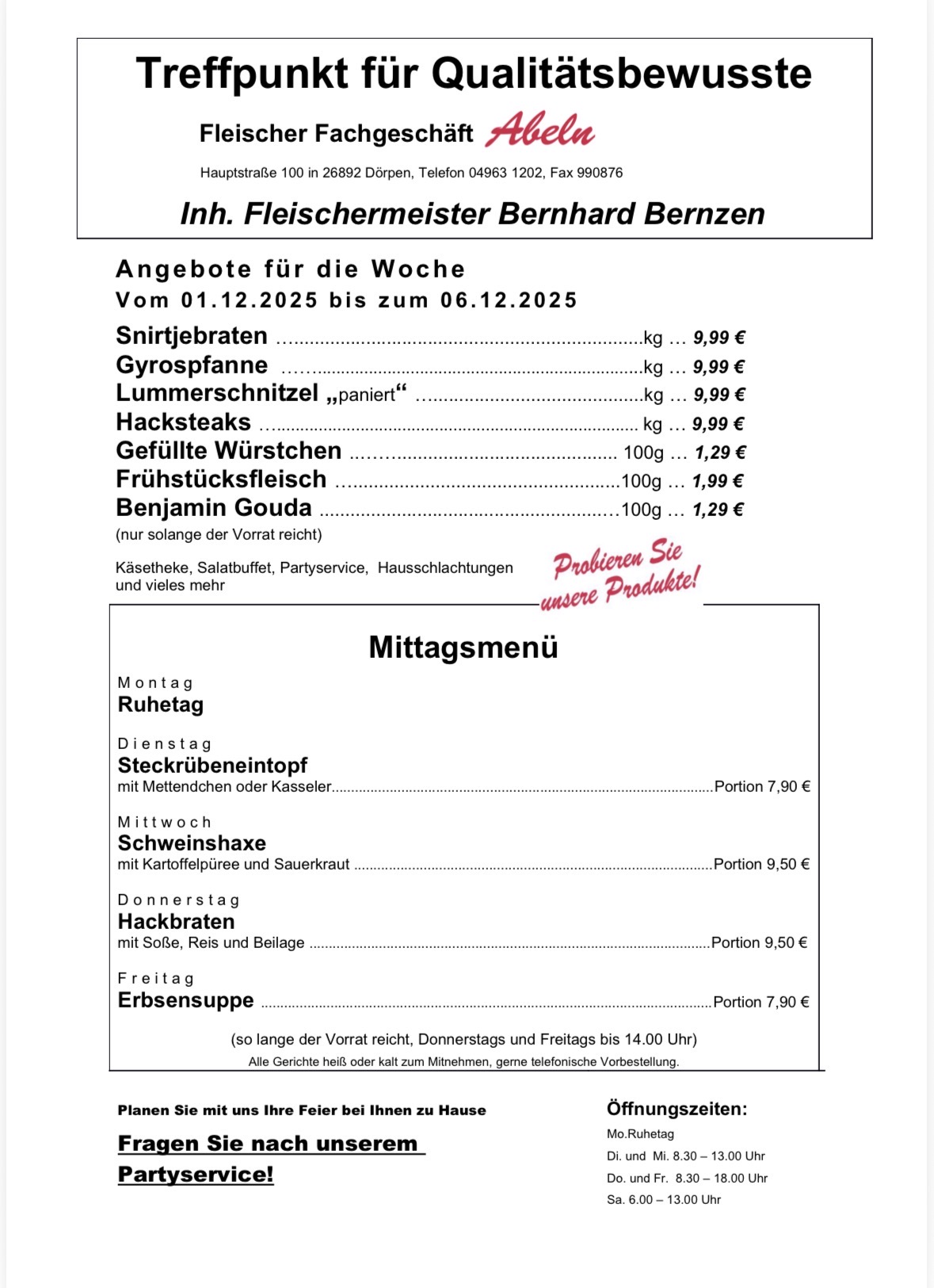 Unsere Wochenangebote ab dem 01.12.25-06.12.25 finden Sie hier