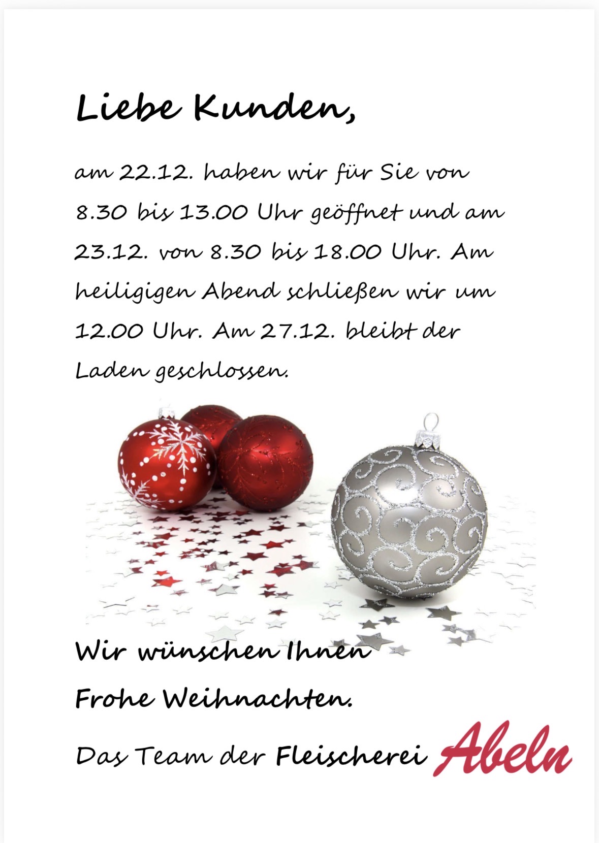 Öffnungszeiten um Weihnachten 🧑🎄 hier